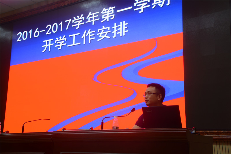 8月27日上午,学校2016-2017学年度开学工作大会在道德讲堂召开。校长彭荣宏,党总支书记钟慧莉,副校长胡惠、张迪平、张志,校长助理屈雪辉出席会议,全体教职工参加大会。会议由钟慧莉主持。