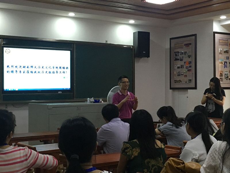 9月27日下午,由国家教育部主办、湖南师范大学历史文化学院承办的2016国培计划中西部项目株洲市能力提升工程“种子教师”工作坊初中文科研修班学员来我校观摩教学。湖南师范大学历史文化学院朱发建教授、李安老师和刘纪高老师出席活动。我校校长彭荣宏、副校长张迪平、保卫处主任兼教务处副主任胡海军热情接待了客人们。我校历史组全体教师参加活动。