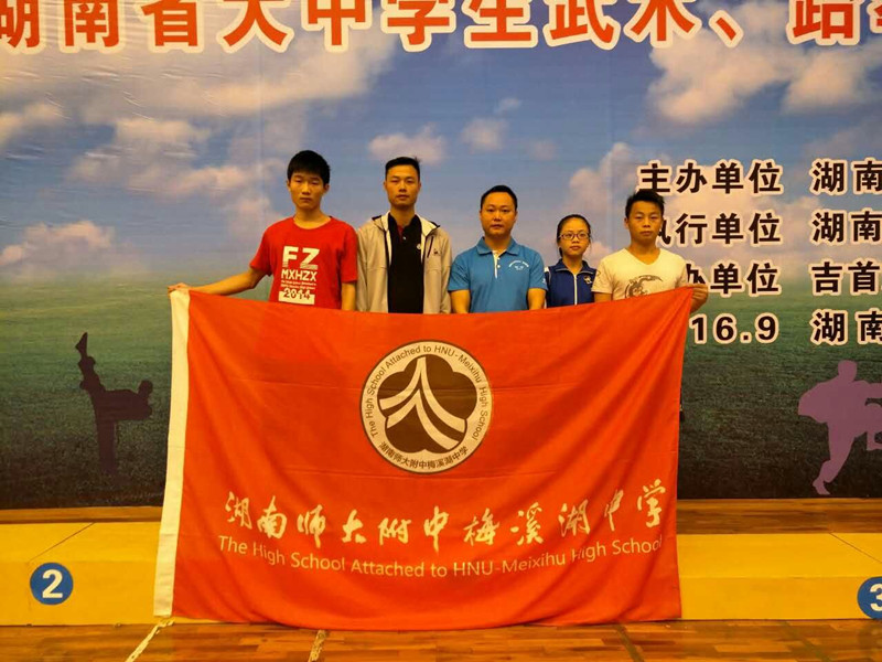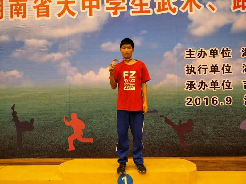 喜报:我校武术健儿在2016年湖南省大中学生武术、跆拳道比赛中荣获佳绩 来源:校办 发布时间:2016-09-29 22:33:58 浏览次数: 次 【字体:小 大】 9月27日,2016年湖南省大中学生武术、跆拳道比赛在吉首大学举行,来自全省37所大学和中学的600余名参赛选手同台竞技。经过层层角逐,我校张坚同学获得中学组棍术,自选长拳金牌两枚,游晟福同学获得刀术铜牌、自选拳术第四名,我校代表队获得团体总分第三名。 特向获奖同学表示祝贺!向主教练邓素老师表示感谢!向全校师生报喜! 分享到: 【打印正文】