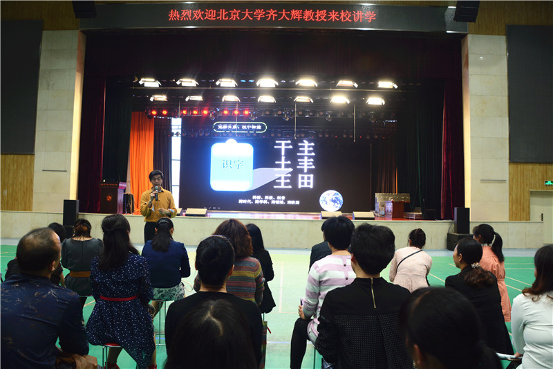 10月18日下午,北京大学家庭教育专家齐大辉教授应我校邀请,在体艺馆礼堂给我校老师和七年级全体家长作了题为《家校协同教育,培养杰出孩子》的讲座。讲座由党总支书记钟慧莉主持。
