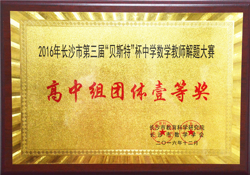 喜报:我校获2016年长沙市第三届“贝斯特”杯中学数学教师解题大赛高中组、初中组团体一等奖