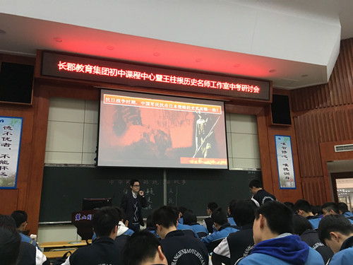 首先,我校老师们观摩了麓山国际历史教师王灵敏的初三历史复习研讨课《中华民族的抗日战争》。该课紧扣热点,围绕探究“十四年抗战”提出的原因与意义,引导学生复习了抗日战争相关的史实,形成了较为完善的知识框架,并通过讲练结合训练了学生的审题与解答的能力,给我校老师们很多有益的启发。