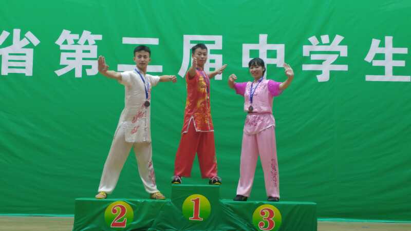 10月11日-15日,由湖南省教育厅,湖南省体育局,共青团湖南省委主办的湖南省第二届中学生运动会武术比赛在湘潭举行。我校武术队员张坚,文彧,欧阳文羿代表长沙市共参加8个项目,通过顽强拼搏,激烈的角逐,共获得6金1银2铜的成绩,长沙市代表队获得团体总分第一名。副校长张志、体育教研组组长殷建波到场观赛,为队员们加油助威。