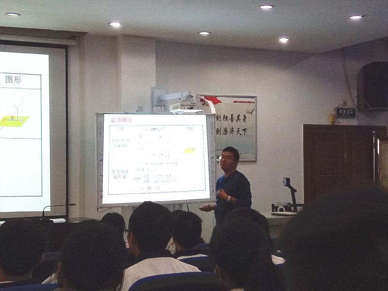 11月12日上午8:30,衡阳市一中骨干教师陈煌与工作室名师学员唐亮分别上了《直线、平面垂直的判定与性质》的示范课。夏远景对两位老师的课进行了精彩的点评与精心的指导。