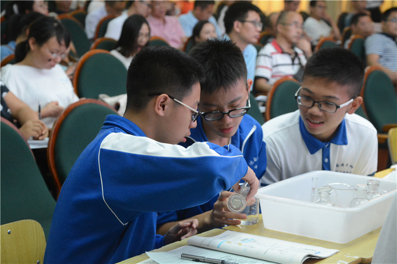 我校领导高度重视,晏荣贵校长亲临现场致欢迎词。化学教师刘女兢给大家呈现了一堂精彩的研讨课。研讨课后,朱登高组织各位专家进行了认真细致的评课。专家们从教育目标,教学设计,教学过程,学生自主,教学评价等方面展开评论,并结合自身的教学经验,给予了这堂课高度的评价和宝贵的建议。特级教师姚建民评价说:“这样的优质课不是经常可以听到。”这是对刘女兢的充分肯定,也是对我校浓厚的教研氛围和较高的教研水平的充分肯定。