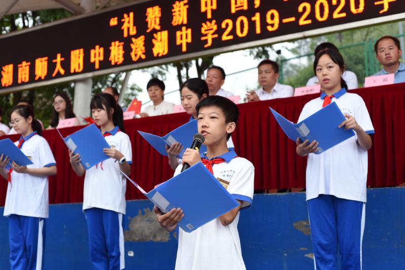 今年刚进师大附中梅溪湖中学读高一的学生说:“这是一场与众不同,丰富多样,意义深刻的开学典礼。学校对我们的期待甚高,希望我们能将个人的梦想与国家的发展相联系,成为一个对国家有用的人。我一定要努力学习,报效祖国,让师梅以我为荣!”