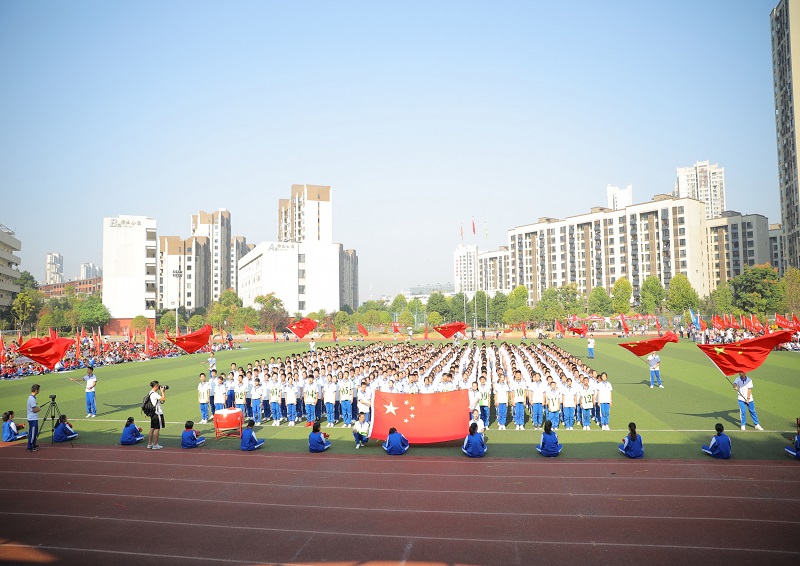 三湘都市报9月29日讯 红旗飘飘迎国庆,音乐声声展深情。今日,聚彩彩票4000名师生齐聚田径场,举行庆祝新中国成立70周年纪念活动暨第六届校园田径运动会开幕式。