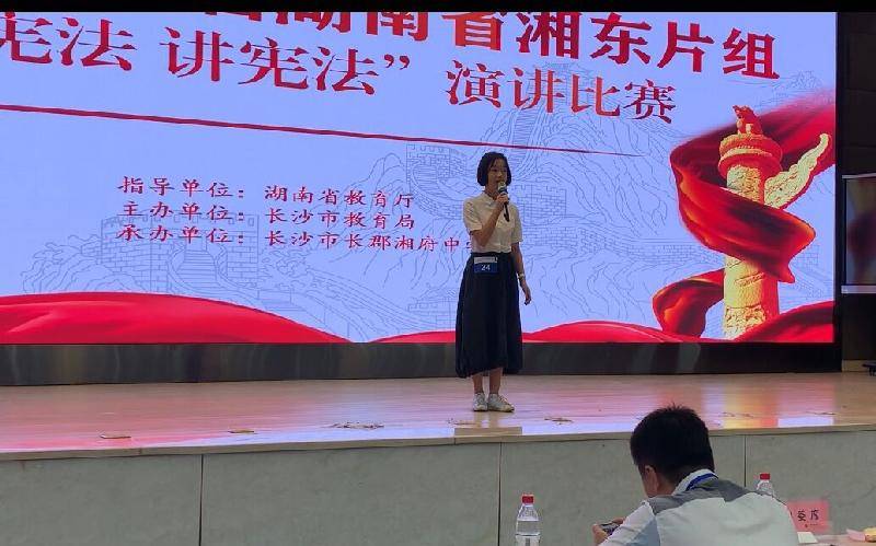 9月28日,由湖南省教育厅举办的第四届“学宪法、讲宪法”演讲比赛在长郡湘府中学举行,