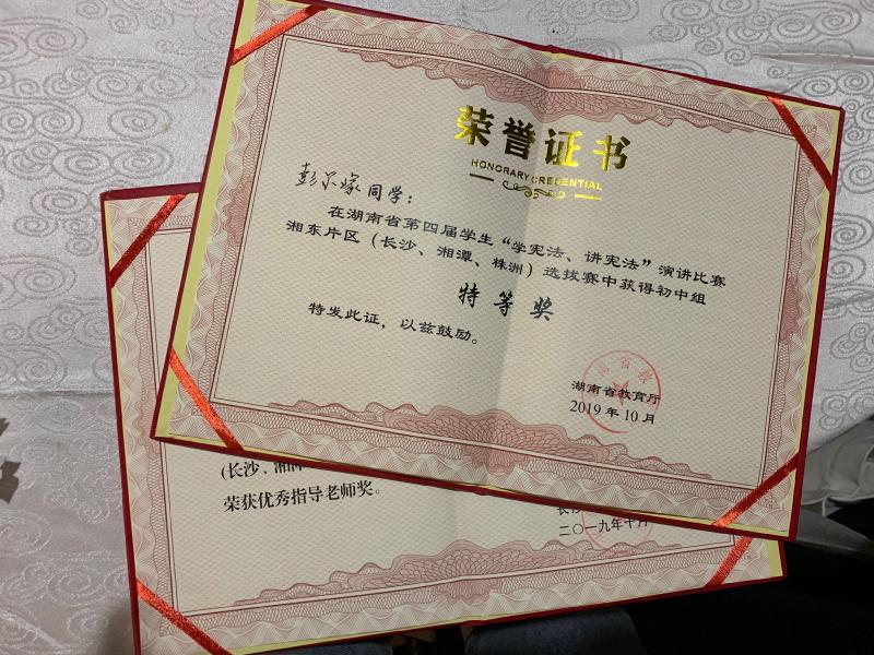 我校初1803班彭尔琢同学在比赛中荣获湘东(长株潭)片区特等奖,并代表湘东片区参加湖南省总决赛!