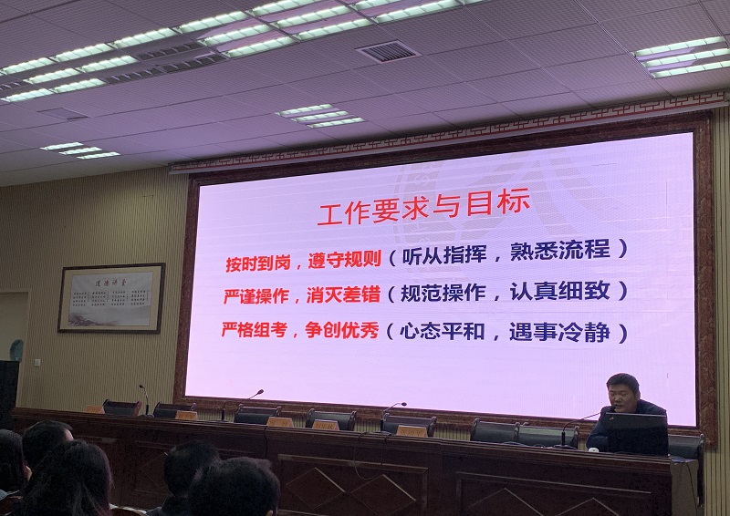 10月25日下午,学校举行全校考务、组考人员专题培训会,校长张迪平、副校长陈益、教务主任张磊、唐亮和所有考务人员参加。会上全体考务人员认真学习和解读成人高考的每一个工作环节的具体要求和特别需要注意的事项。培训会上,考点主考张迪平对本次成人高考全体组考老师提出以下三个整体要求:按时到岗,遵守规则;严谨操作,消灭差错;严格组考,争创优秀。陈益副校长结合2018年成人高考组考中所反映出的问题并结合我校实际提出了具体的工作规范和要求,确保2019年我校作为成人高考考点的全面工作不出任何问题和漏洞,确保工作质量关和效率关。