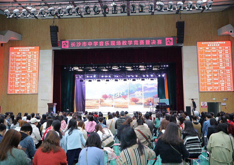 桃花岭下,梅溪湖畔,一渠清流泽万方;公勤仁勇,清容建畅,百代流芳薪火传。10月30日由长沙市教育科学院主办,师大附中梅溪湖中学承办的长沙市中学音乐教学竞赛活动在我校体育馆三楼隆重举行,本次长沙市中学音乐教学竞赛活动共有来长沙市九所学校的艺术教研组的老师参与角逐。