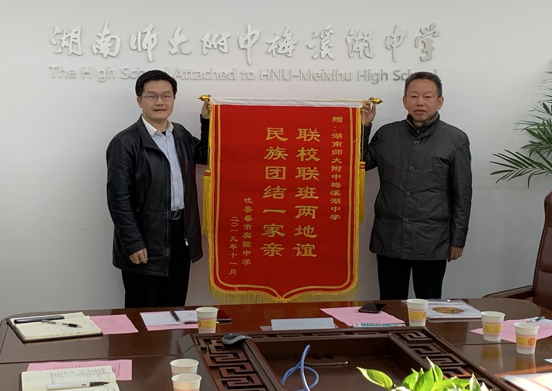 12月12日,新疆吐鲁番市实验中学党委副书记、校长彭荣宏(原师大附中梅溪湖中学校长)率领中层管理干部和高考科目教研组长来我校开展联学、联谊活动。