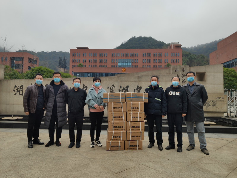 凝聚爱心,阻击疫情,正当举国上下齐心协力抗击新冠病毒感染的肺炎战役的时候,抗击疫情的物资原本就很紧缺,湖南好莱晟医疗科技有限公司领导一行于2月27日下午专程来到我校指导学校疫情防控工作并向我校捐赠爱心抗疫情物资,他们向我校捐赠一批口罩和酒精消毒液等,也正好解决学校开学后急需的大量此类物资的燃眉之急。