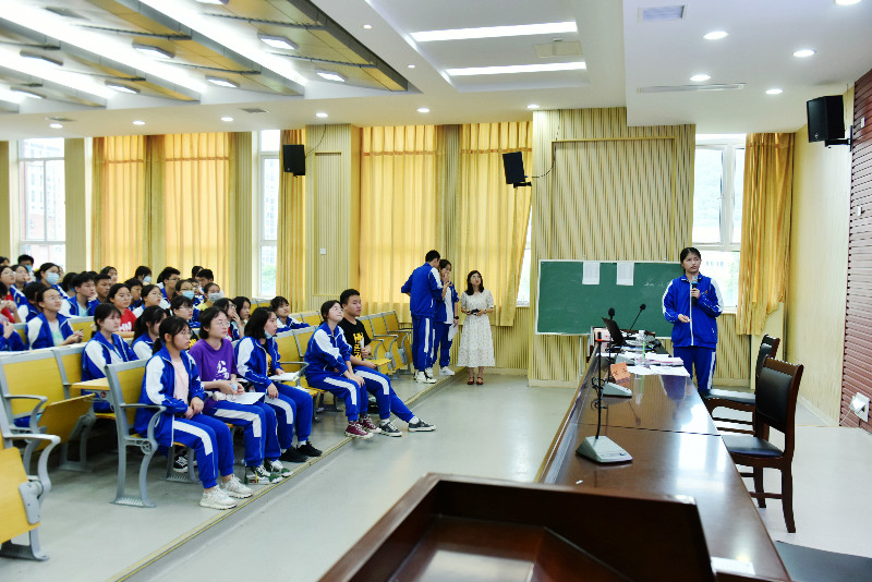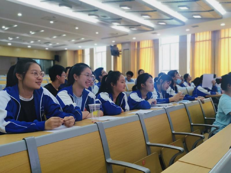 在活动现场,负责九个专业的同学分别上场,就自己探索的专业进行讲解。主要包括“专业内涵、课程设置、选科要求、高校推荐、职业现状、发展前景”等板块。主讲的同学落落大方,以自信从容的风采为大家进行精彩的解析和互动。台下的同学则一个个都聚精会神地听着,不时发出对于演说内容的惊叹,或相应的疑问,主讲的同学也做好了充分准备,不仅能讲得精彩,对同学们的疑问也一一进行了解析。