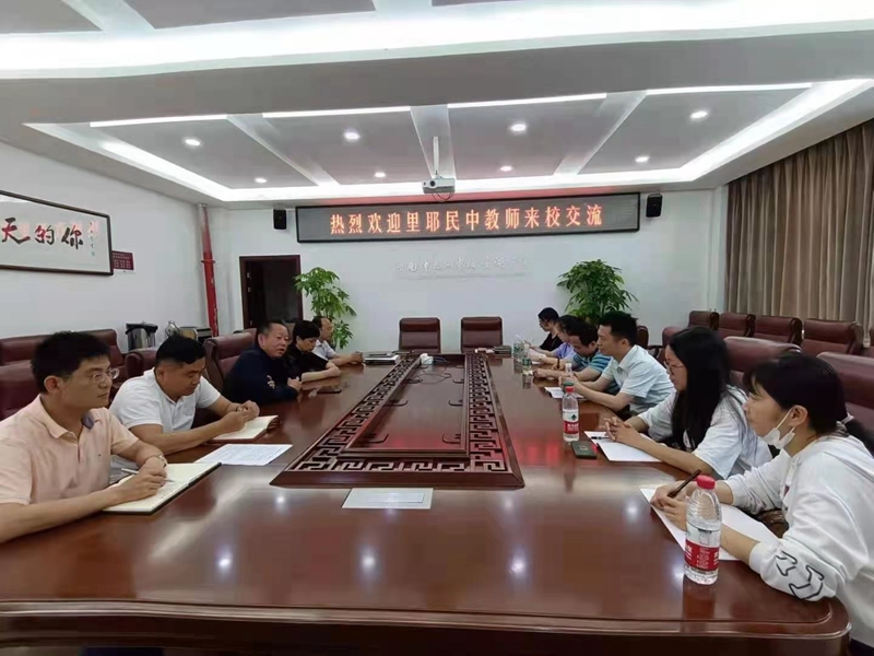 5月13日,湖南里耶民中教师来校交流。我校校长张迪平,党委书记钟慧莉,副校长胡惠、张志,校办主任兼保卫处主任胡田超热情接待。