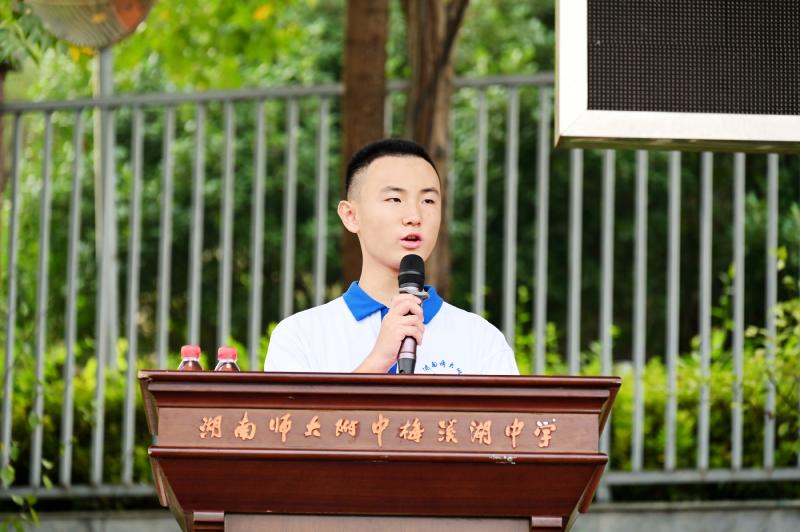 随后,来自高2109班的刘宥成同学作为新生代表发言。他初中毕业于师梅,首先回顾了初中的学习和生活,并对关心和帮助他的师长表示诚挚的感谢。同时,他也向全体同学发出倡议,争做乐善少年,勇担时代责任,面对不断发展的祖国,有底气地说出:请党放心,强国有我!