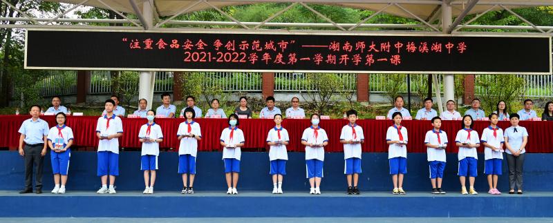 典礼第二阶段的主题为“注重食品安全,争创示范城市”,总务处副主任段友才作了《食品安全记心间》的开学第一课。