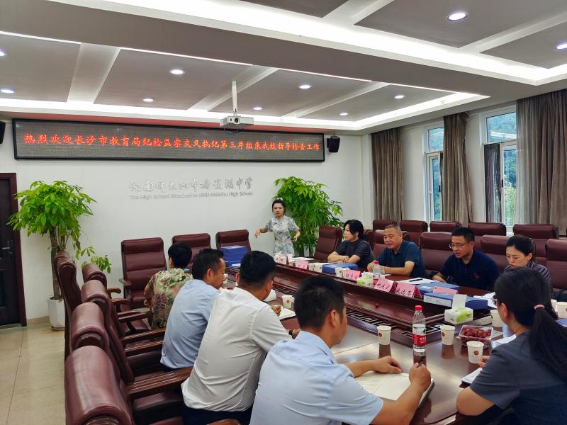 9月29日上午,长沙市教育局局机关纪委书记杨志军,检查组组长姚庆武,组员阳淼、杨军、施远亭、周雅洁、胡伊凡等一行到我校进行国庆作风建设督查。校党委书记钟慧莉主持迎检会议,校长张迪平在会议上发言,全体校领导及各部门负责人参与了会议。