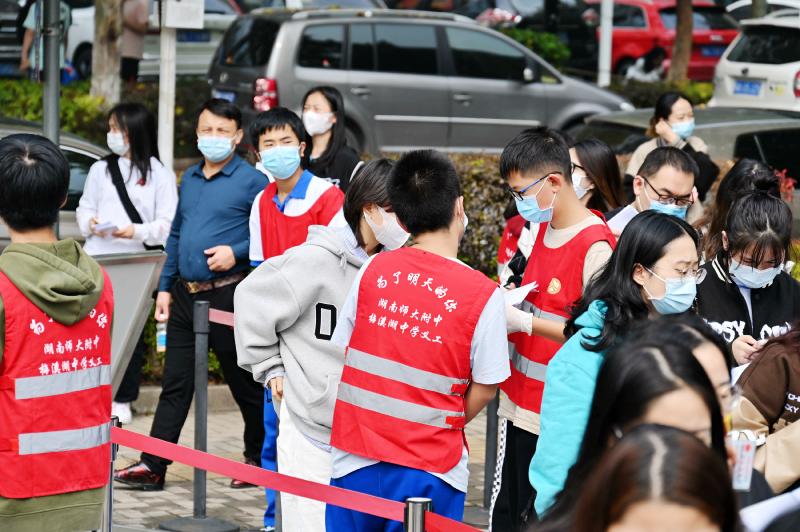 考试期间,长沙市教育局副局长邓芸等省、市、区各级领导来校检查组考工作。他们听取了我校领导关于本考点的组考工作汇报,查看了电子监控室、考务办公室、试卷保密室等处,高度评价了我校组考各项措施科学规范。一天的考试,在各级领导的悉心指导下,在全体考务人员的密切配合下,我校顺利完成了组考各项工作,获得领导和考生一致好评。