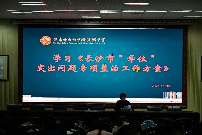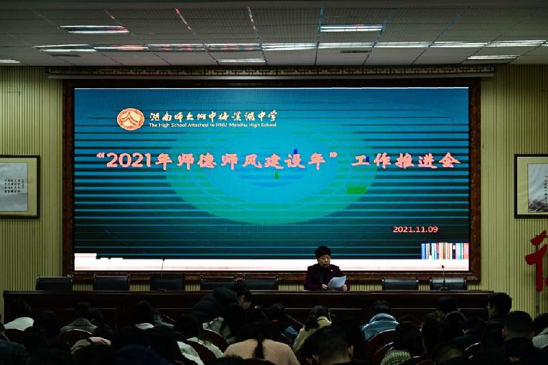 11月9日,学校在道德讲堂召开长沙市“学位”突出问题专项整治暨师德师风建设年工作推进会,传达学习长沙市“学位”突出问题专项整治暨师德师风建设年等相关文件精神,研究部署落实方案。校长张迪平,党委书记钟慧莉,副校长胡惠、张志出席,全体教职工参加会议,会议由校办公室主任胡田超主持。