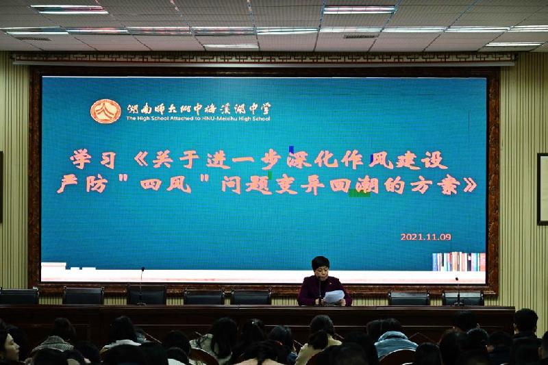 11月9日,学校在道德讲堂召开深化作风建设专项整治行动部署会。校长张迪平,党委书记钟慧莉,副校长胡惠、张志出席,全体教职工参加会议,会议由校办公室主任胡田超主持。