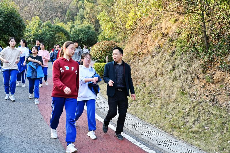 “双减”政策背景下,如何减轻学生学业负担,同时全面促进学生体质健康,我校践行“五育并举”理念,打造学校体育特色和品牌,利用得天独厚的地理条件,组织全校师生开展徒步桃花岭阳光体育活动。在每天第九节课后,学校分年级从东门出发进行徒步,目的是为了引导学生走出教室、走进大自然、走到阳光下,积极参加体育锻炼,加强学生有氧运动,改善学生心肺功能,提高学生体质耐力,促进教师与学生、学生与学生之间的和谐关系,同时增强学生克服困难的意志品质。