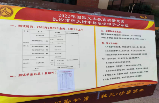 5月25、26日,2022年国家义务教育质量监测如期进行,我校作为本年度质量监测样本校,高度重视,凝心聚力,以高标准、严要求,扎实有序地推进监测工作,顺利完成监测任务。