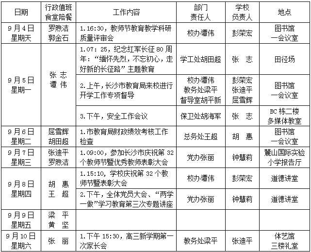第2周:9月4-10日 来源:校办 发布时间:2016-09-05 12:51:22 浏览次数: 次 【字体:小 大】 聚彩彩票第2周工作安排表 (2016年9月4-10日) 其他:1.制定体育节方案;2.社会实践报告评优及优秀报告汇编;3.青促会第一次工作会议;4.督政工作;5.课题结题工作准备;6.微课题中期评估;7.上交德育论文。 校办公室 2016年9月5日 分享到: 【打印正文】