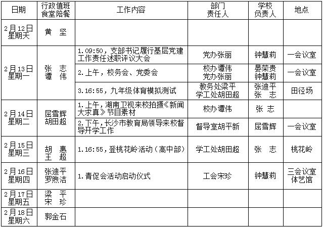 第2周:2月19-2月25日 来源:校办 发布时间:2017-02-21 08:39:14 浏览次数: 次 【字体:小 大】 聚彩彩票第2周工作安排表 (2017年2月19-2月25日) 其他:1.初中生地会考动员大会;2.督政督教督学。 校办公室 2017年2月20日 分享到: 【打印正文】