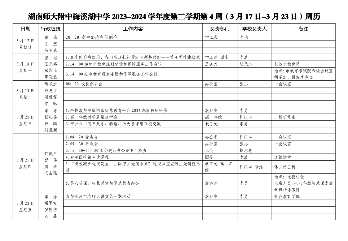 2023-2024学年度第二学期第4周周历