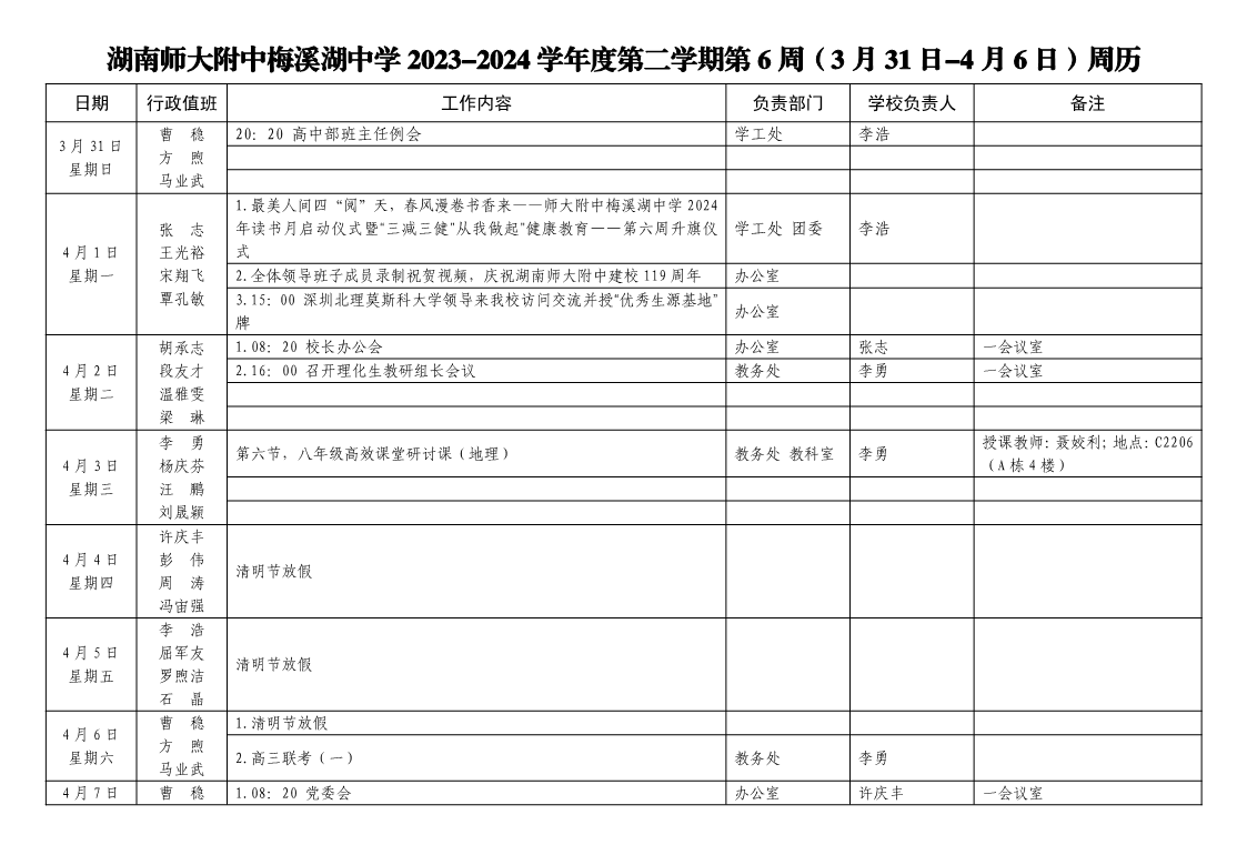 2023-2024学年度第二学期第6周周历