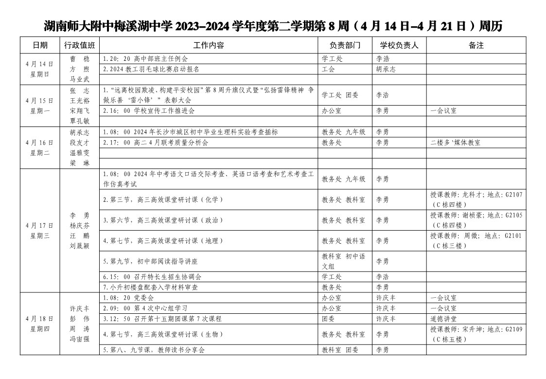 2023-2024学年度第二学期第8周周历