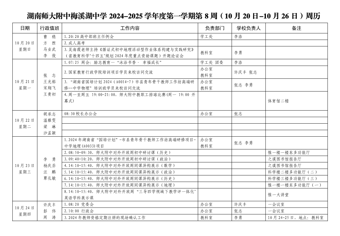2024-2025学年度第一学期第8周周历